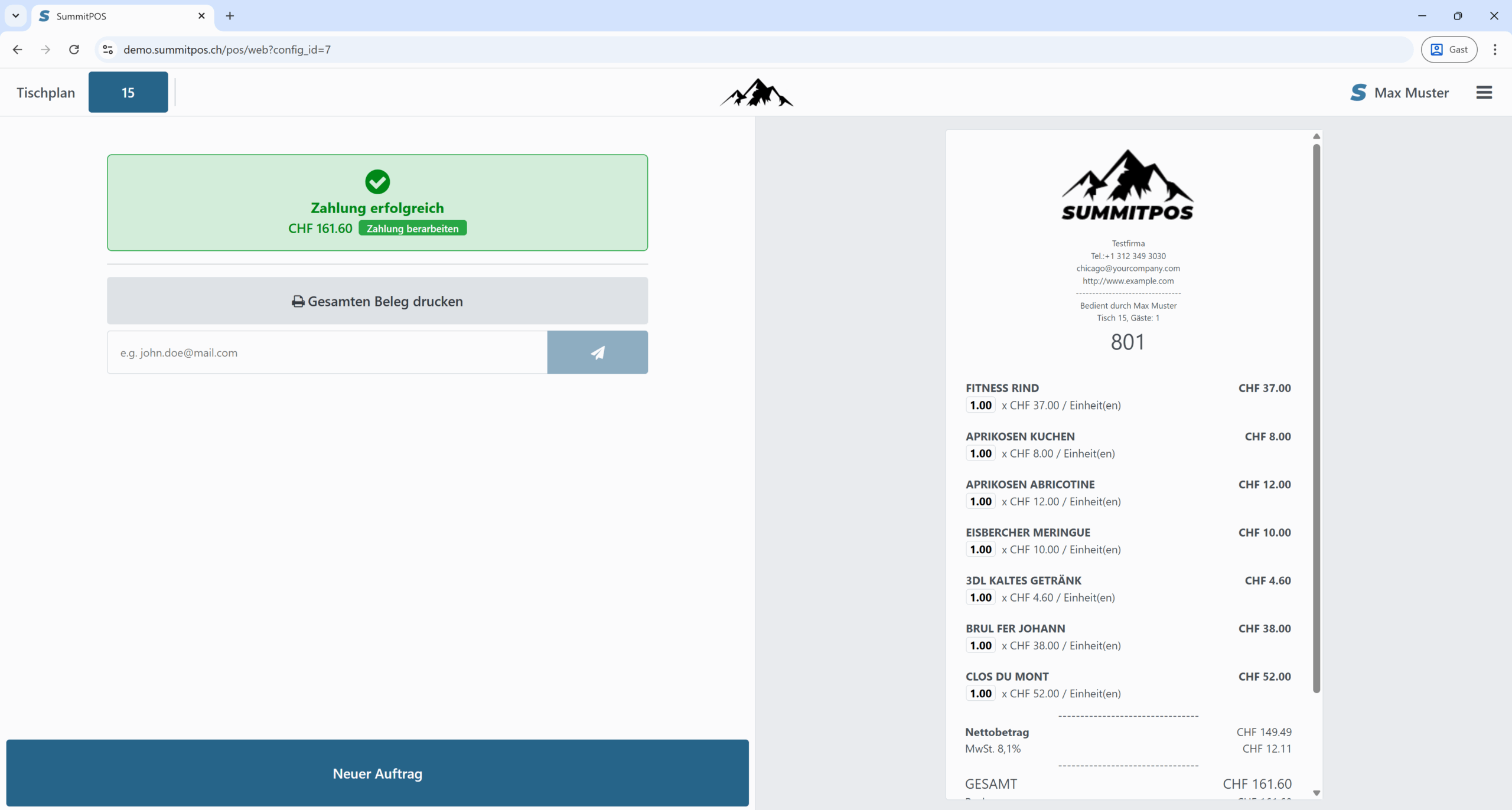 Auch Rechnungszahlungen sind möglich: Der Gast wird digital erfasst, und der Beleg wird entweder klassisch ausgedruckt oder direkt per E-Mail verschickt. So läuft alles nahtlos, sicher und ohne Umwege.